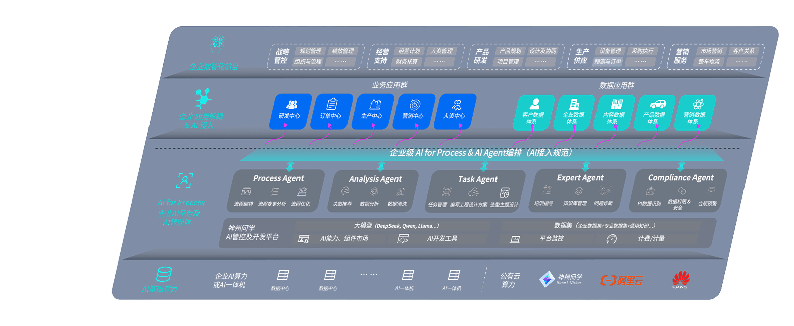 端到端的一站式AI工作空间深度融合了从企业战略规划到日常经营的全流程业务板块,,,定向解决车企内部领域多、、、部门多、、链条长、、、、场景碎片化等难题,,,,支持车企快速构建以AI为核心的生产力写作体系,,实现任务执行与AI能力的无缝集成与交互