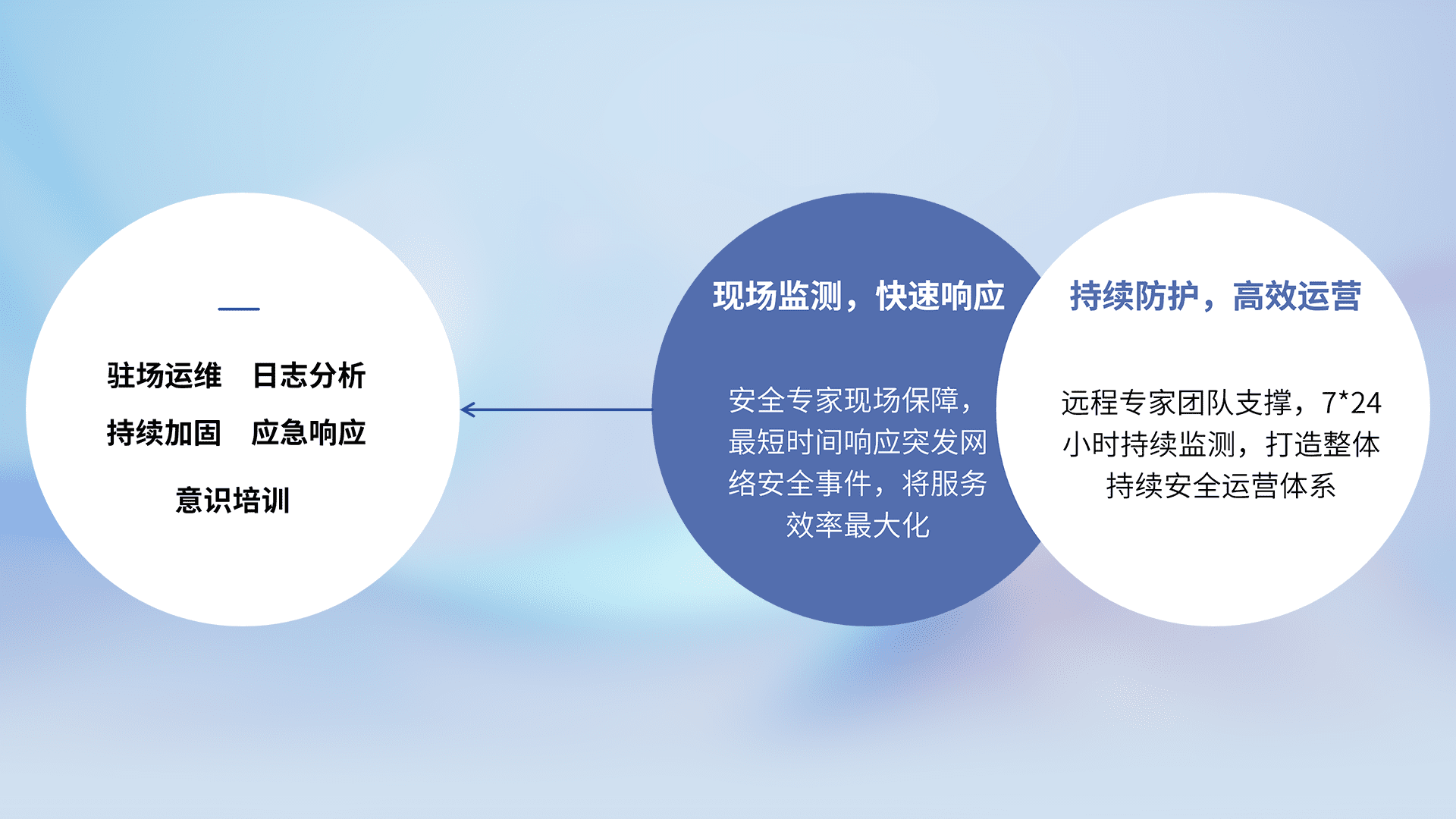 针对客户行业特性,,,,提供专属的一站式安全管理服务,,,帮助客户全面感知网络空间威胁,,通过安全专家的线上、、、线下防护支持,,,,实现风险闭环,,,将安全保障常态化,,,,为客户打造常态化安全运维运营服务。。。